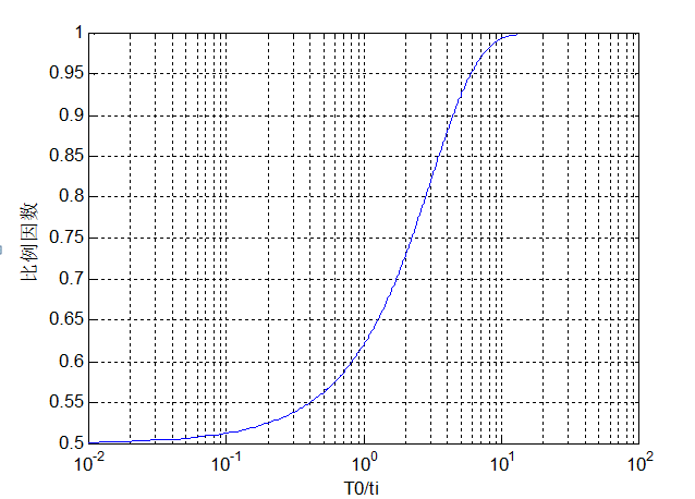 图3正弦半波热冲击的估算因数(T0为热功率周期,ti为热网络时间常数)