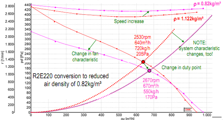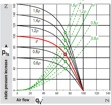 图3空气密度对风道工作点的影响