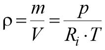 其中p为压强[Pa],1Pa=1N/m^2,T为开尔文温度[K], T=摄氏温度+273.15,,Ri为气体常数[J/kgK],其中干燥的空气系数Ri=287.05J/kgK 。